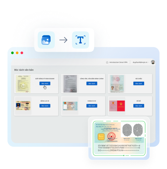 VNPT Smart Vision có khả năng số hóa đa dạng các loại giấy tờ, văn bản hiện nay tại Việt Nam. Văn bản sẽ được chuyển đổi sang dạng text có thể biên tập, sửa chữa nhanh chóng và dễ dàng. Nhận dạng và tự động trích xuất chính xác các trường thông tin mong muốn. Phát hiện giấy tờ không đủ điều kiện sử dụng.